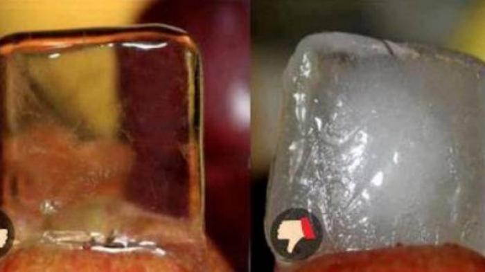 Sedangkan es batu yang dibuatnya dari air yang sudah dimasak tidak memiliki warna atau terlihat bening, hal ini dikarenakan kandungan gas yang ada pada air mentah akan terlepaskan ketika proses peleburan.